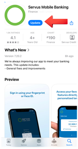 Members may be experiencing an error when trying to access Mobile Banking through the Servus app.